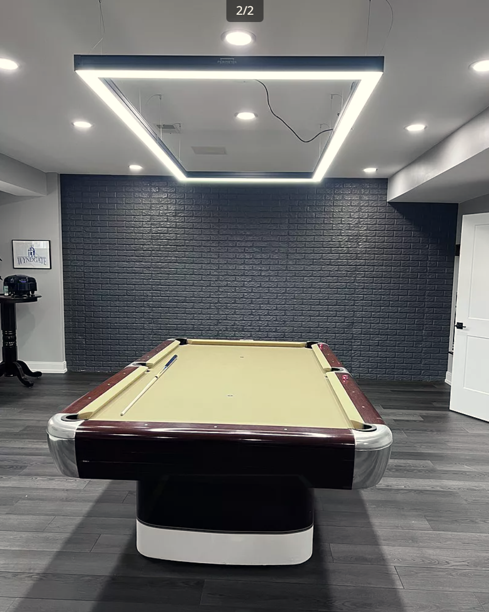 The 8FT Perimeter Billiard® LED Pool Table Light offers modern design with a sleek satin black finish and tournament-grade brightness. Customers appreciate its easy installation, lack of shadows, and fast shipping.